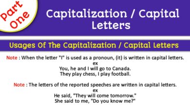 Capitalization / Capital letters When the letter “I” is used as a pronoun, (it) is written in capital letters. ex…